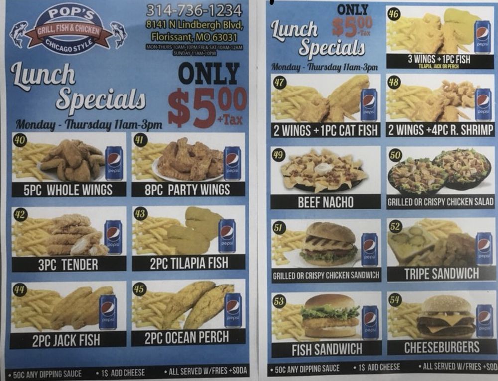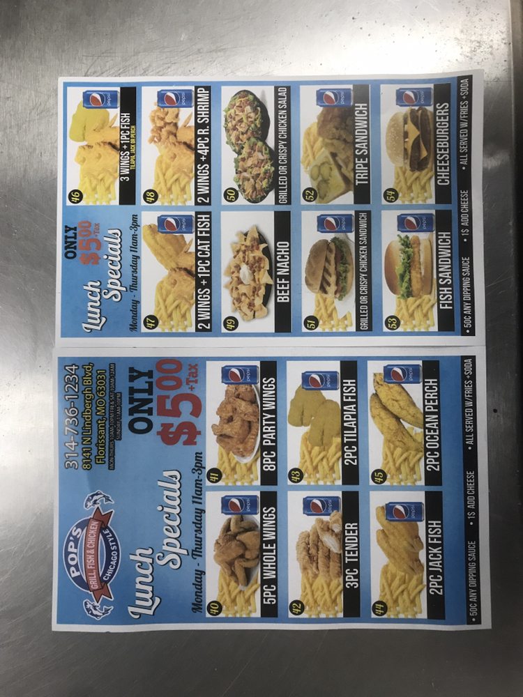 Welcome to Pop’s Grill Fish & Chicken, a delightful culinary haven located at 8141 N Lindbergh Blvd in Florissant, MO. Specializing in mouthwatering chicken wings and fresh fish, this restaurant is the perfect spot for those craving American comfort food.